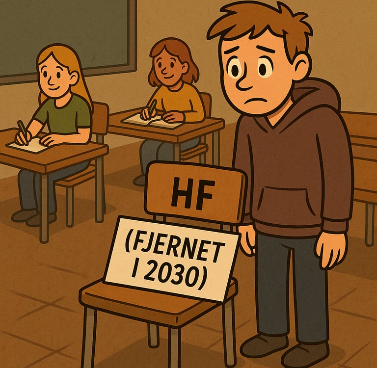 Jeg er 18 år. Jeg skal – ligesom alle andre – begynde at tænke på min fremtid. Sidste gang skrev jeg om jobcenter og arbejdsmarkedet. Men hvad med uddannelse? Eller rettere: resterne af de muligheder, der er tilbage. Det er et tragisk paradoks, at regeringen siger, de vil sikre bedre støtte og flere muligheder for unge med psykiske lidelser – samtidig med at de vælger at afskaffe HF, som for mange af os er den eneste mulighed, der reelt har fungeret.